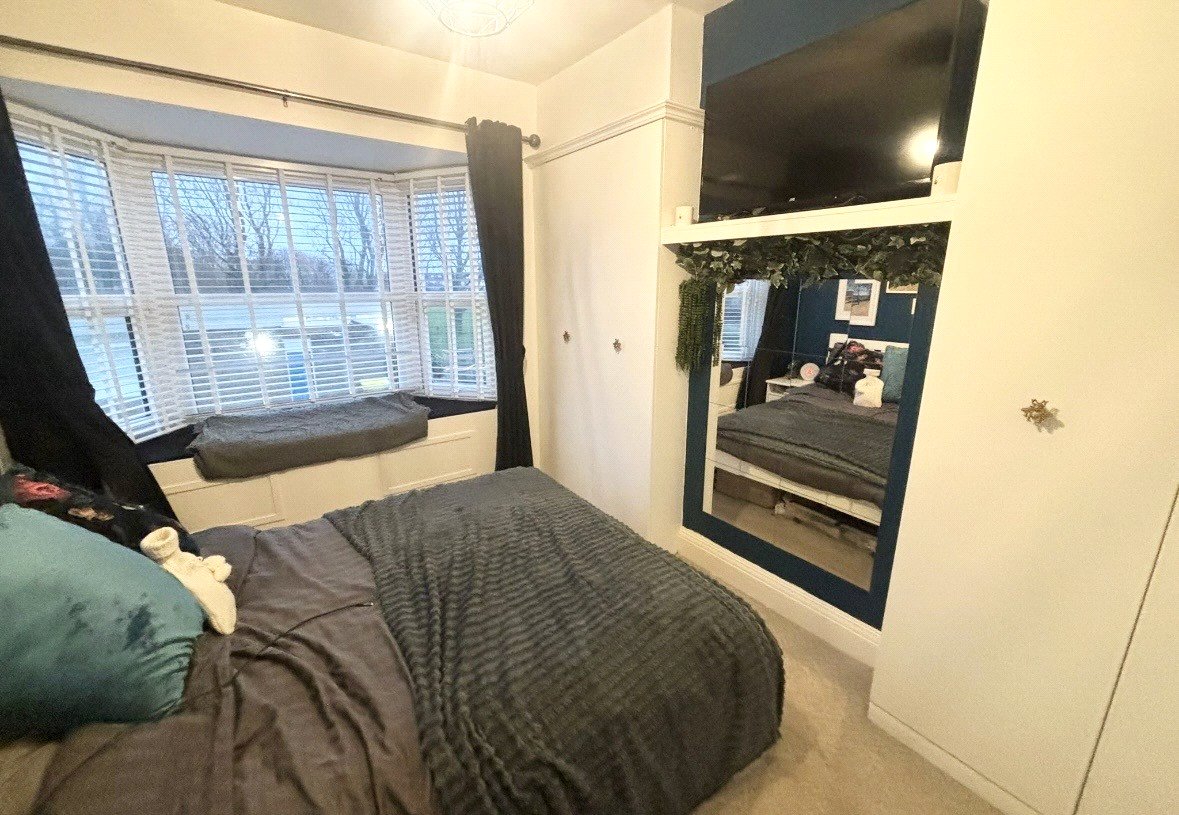 UPVC double glazed bay window to front, fitted wardrobes, radiator.