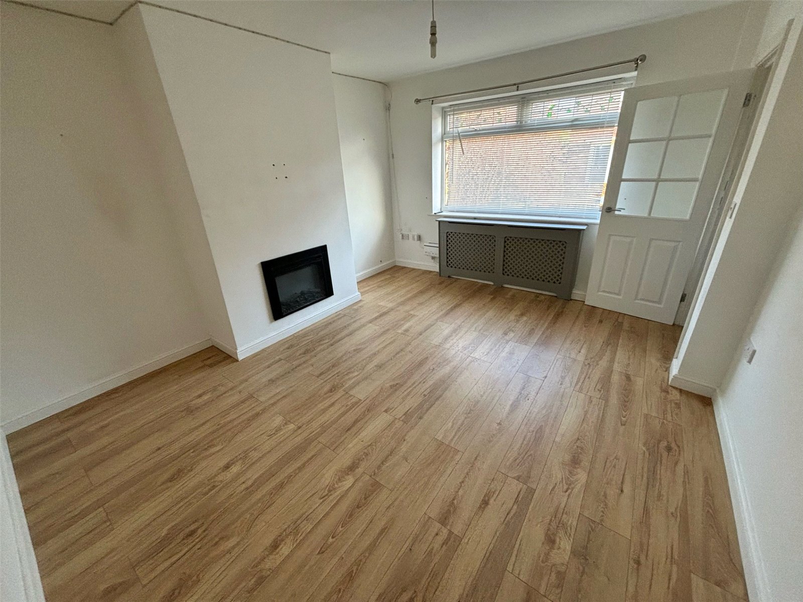 UPVC double glazed window to front of property, laminate flooring, radiator.