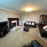 Double-glazed 3-part walk-in bay window, feature fireplace with inset due-fuel log burner, handmade timber surround and marble hearth, radiator, carpet.