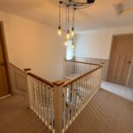Double-glazed window, loft entrance, panel effect walls, open balcony with banister and handrail, storage cupboard, carpet.