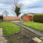 Good-sized garden with paving and lawned areas, new fence to rear, shed sitting on concrete slab.