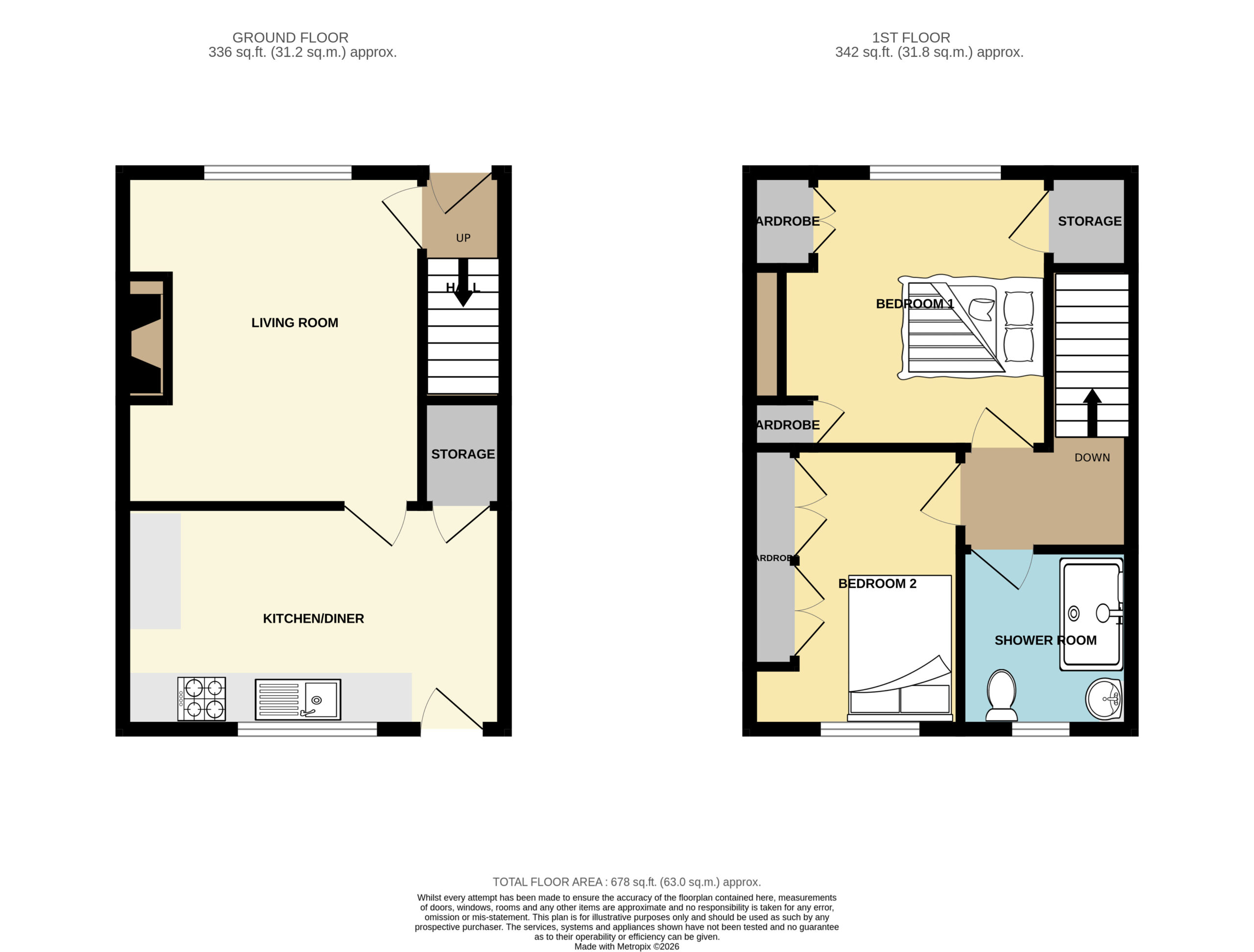 The property benefits from full double-glazing, gas central heating, newly fitted kitchen and shower-room, 2 bedrooms with fitted wardrobes, rear yard with large storage unit.