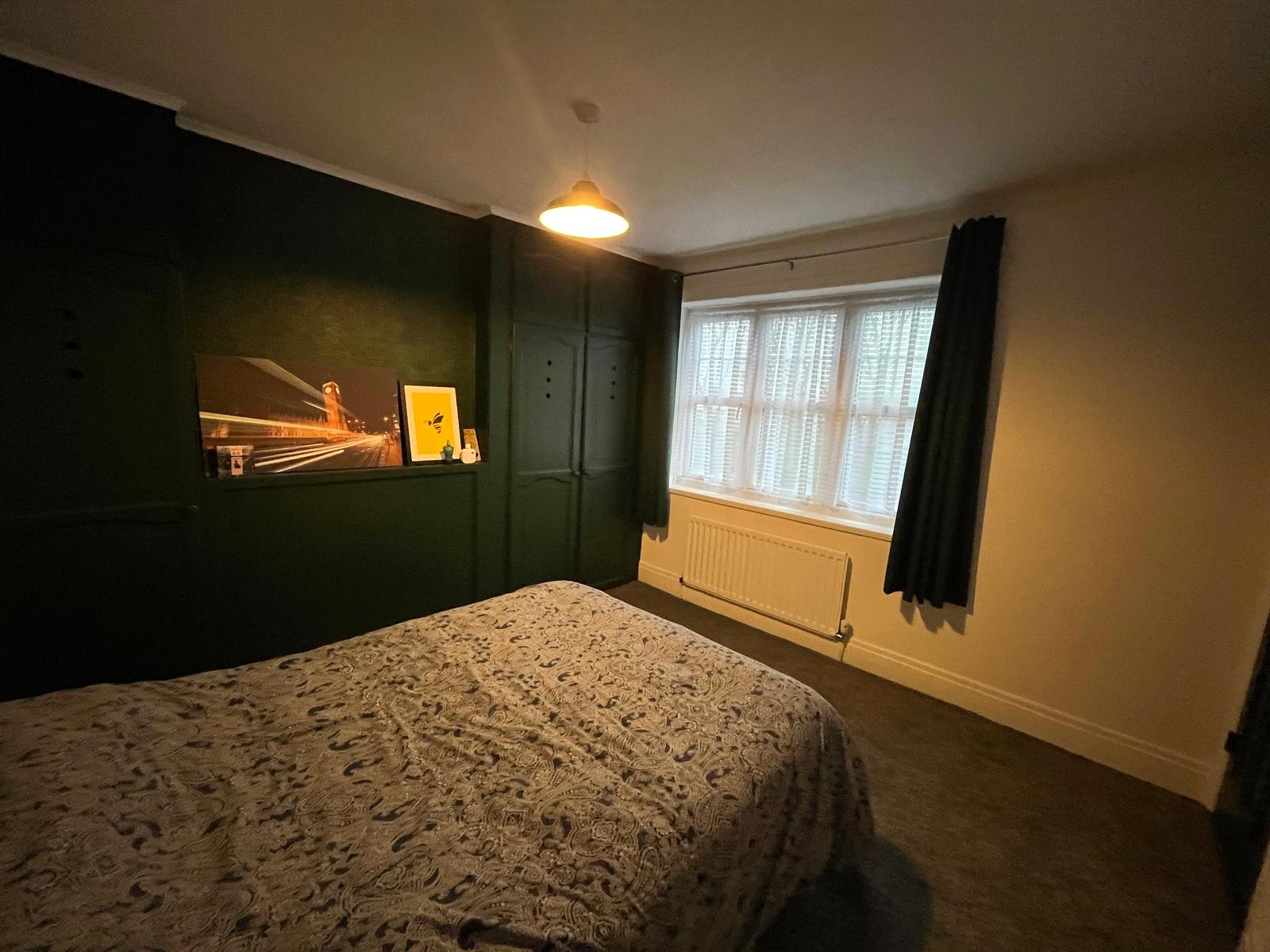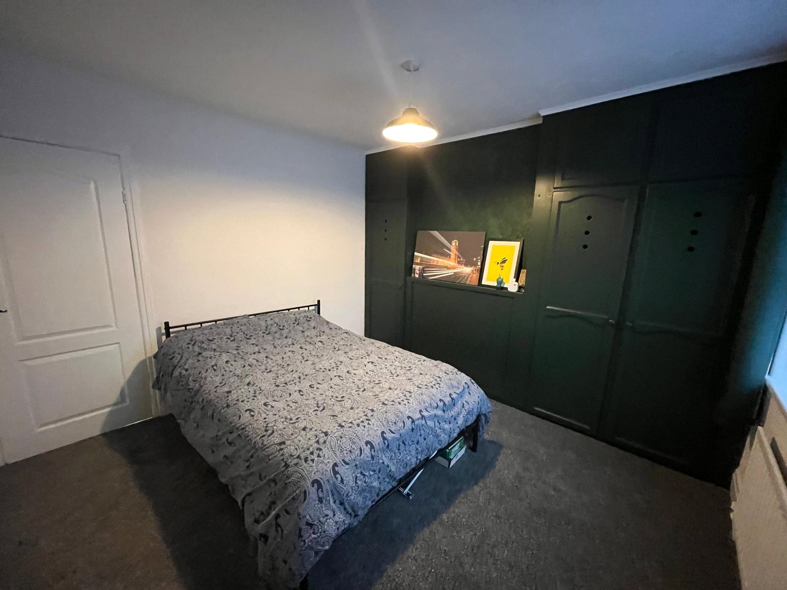 Double-glazed window, feature fire-breast, fitted wardrobes to both alcoves, bulk-head storage cupboard, radiator, carpet.