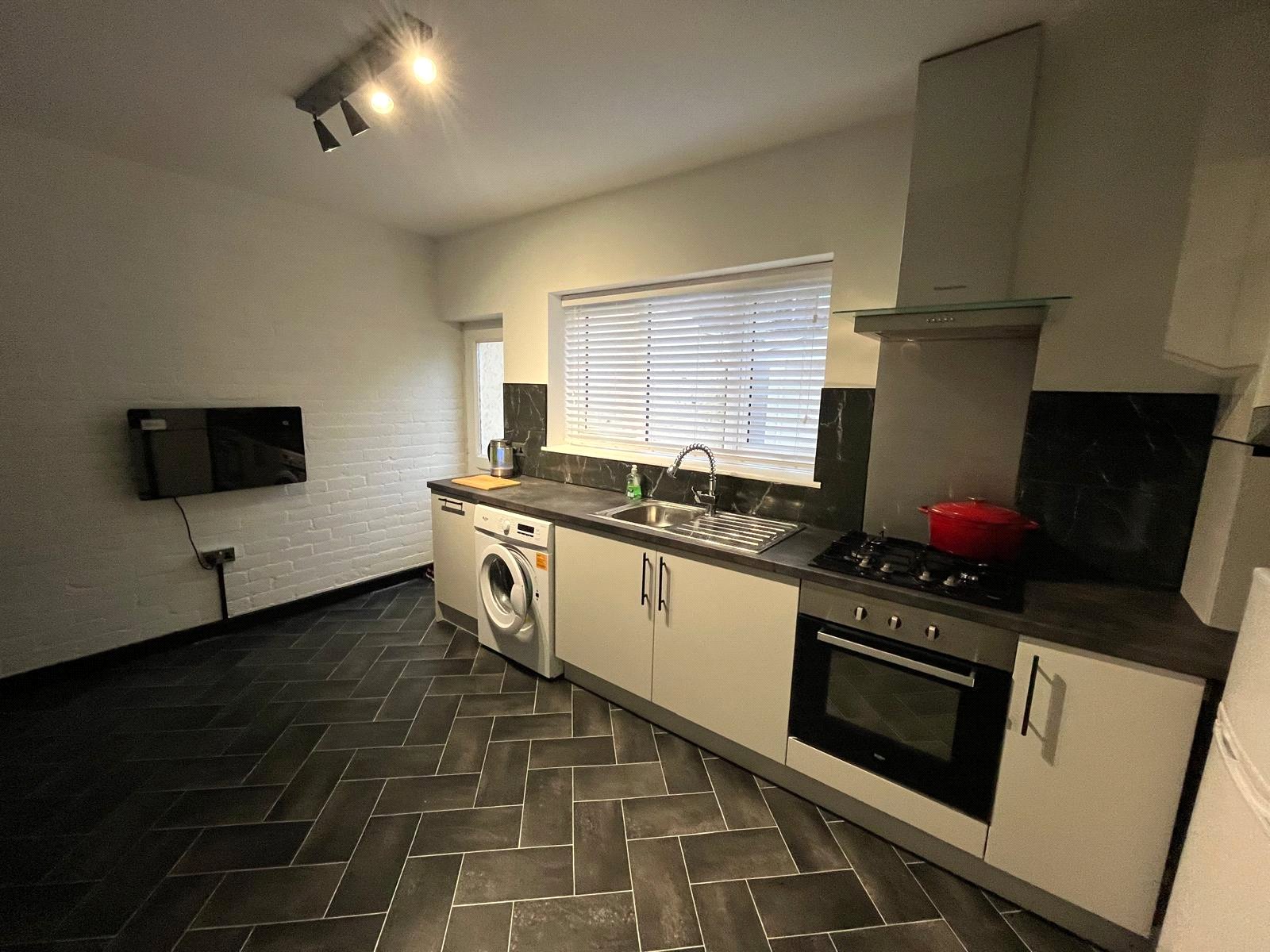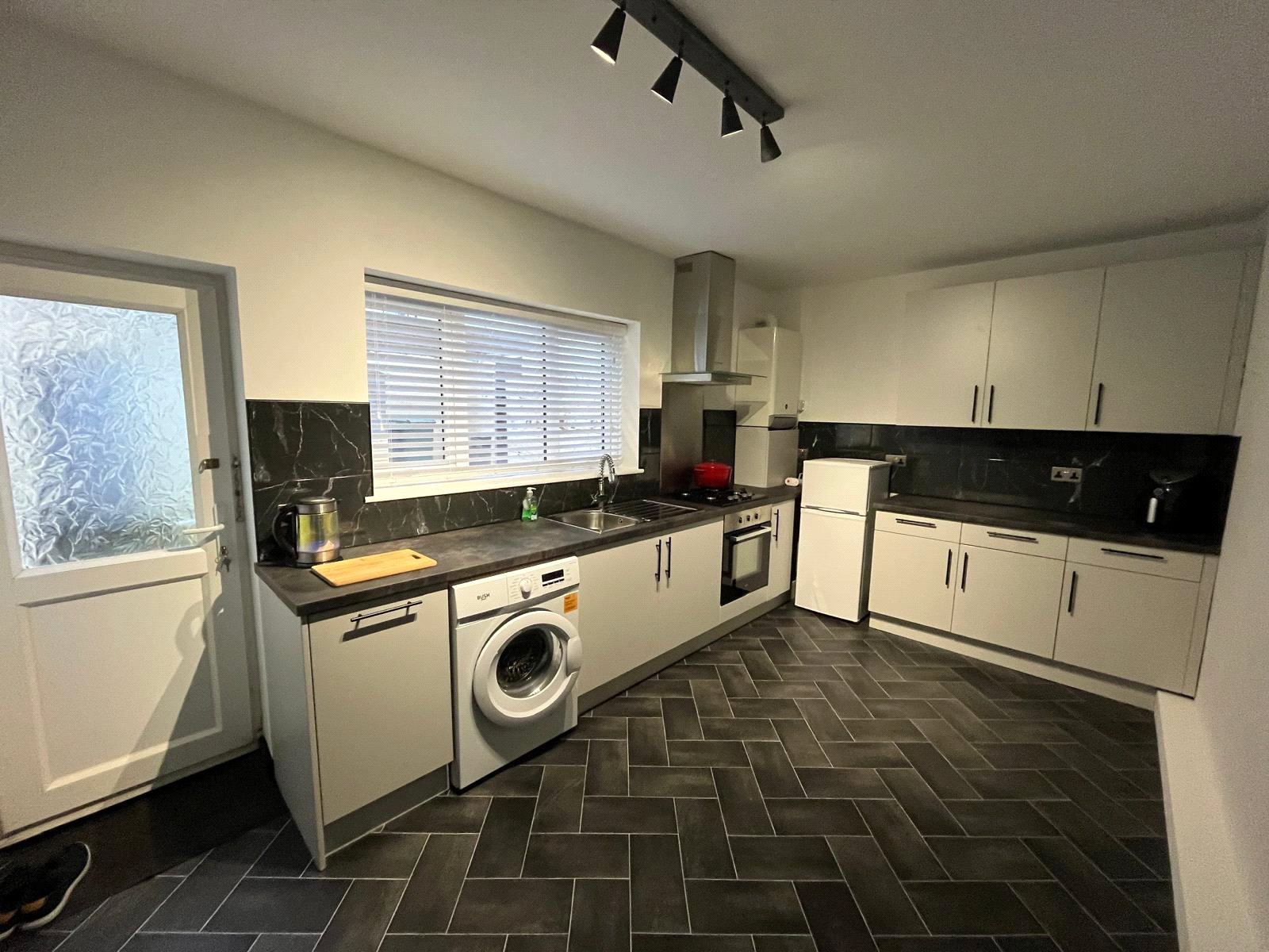 Double-glazed window and door to rear yard, full range of base and wall units, electric oven, gas hob, entractor, single bowl sink unit, eco electric radiator, plumbed for washing machine, space for a free-standing fridge/freezer, vinyl flooring, under stairs storage cupboard housing gas boiler.