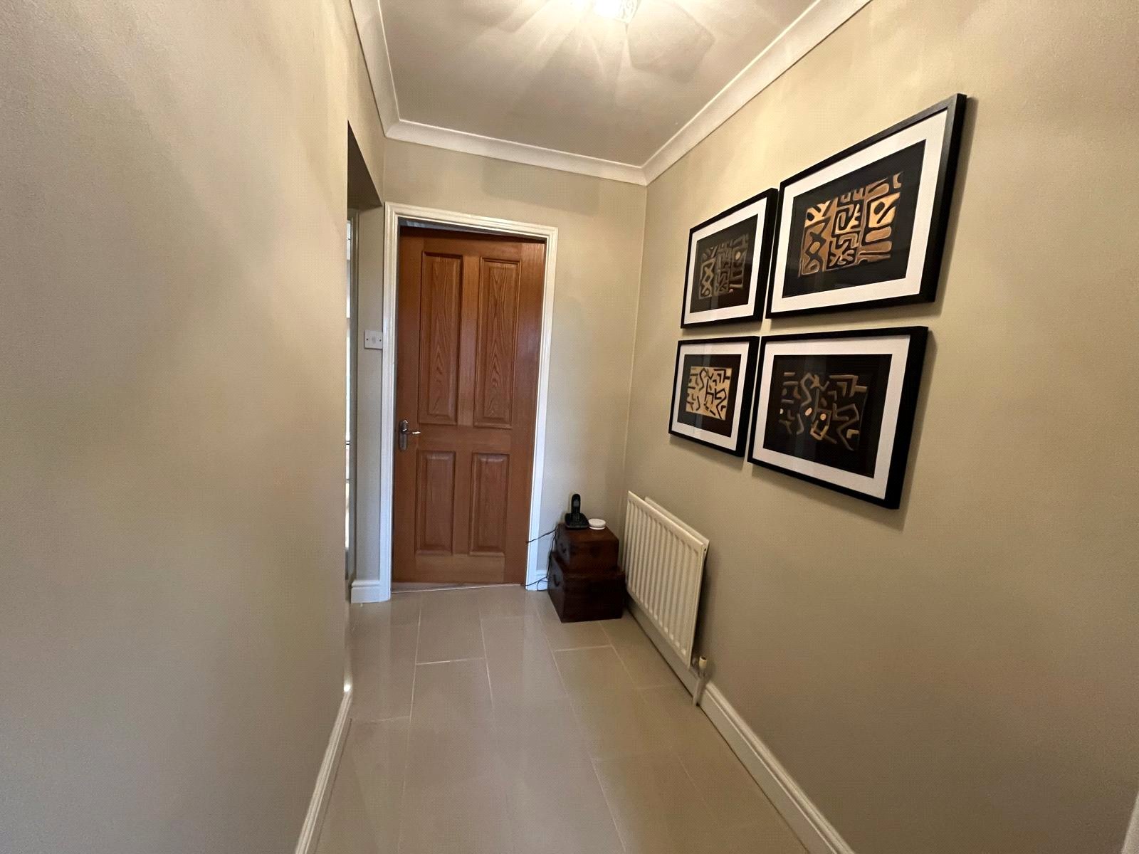Tiled flooring, radiator, leading to living room, bedrooms and bathroom.