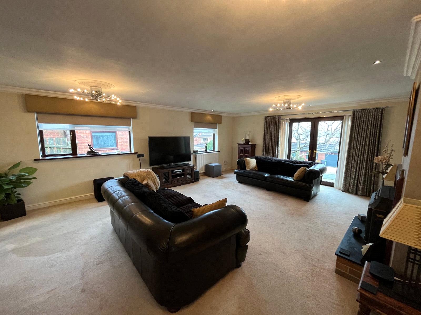 2 Double-glazed windows, French doors with full height glazed side panels, feature fire breast with inset gas fire and marble hearth, double doors to conservatory, double arched doors to kitchen, 2 radiators.