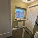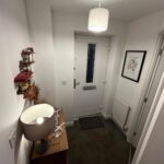 Access to cloakroom, Large under-stairs storage cupboard.