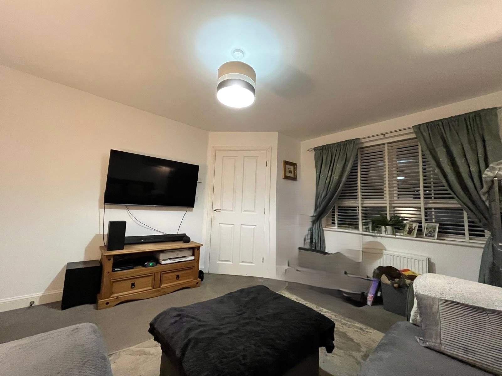 Front aspect - Double-glazed window with louver blinds, Radiator, Carpeted, Entertainment panel with concealed coms.