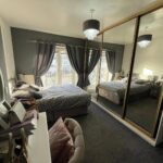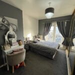 Double-glazed French doors with Juliet balcony, full wall of fitted sliding mirror wardrobes, feature fire breast, carpet.
