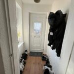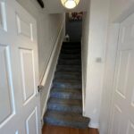 Leading to stairs and Living room, laminate flooring, carpeted stairs.