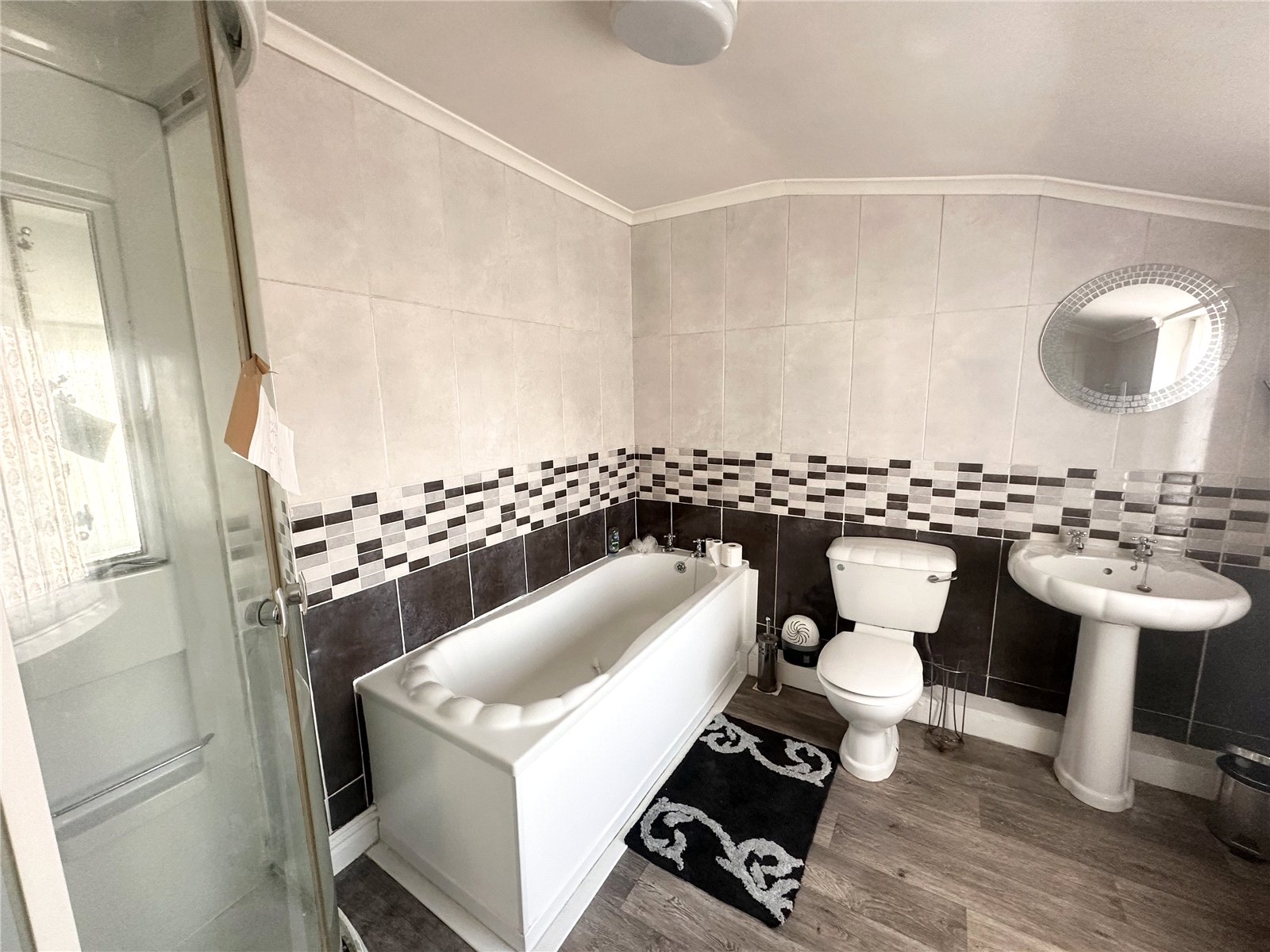 Fitted with a white 4 piece suite comprising of a self contained shower cubicle, panelled bath, wash hand basin, low level w.c, tiling to splash back areas, lino flooring, towel rail, double glazed window
