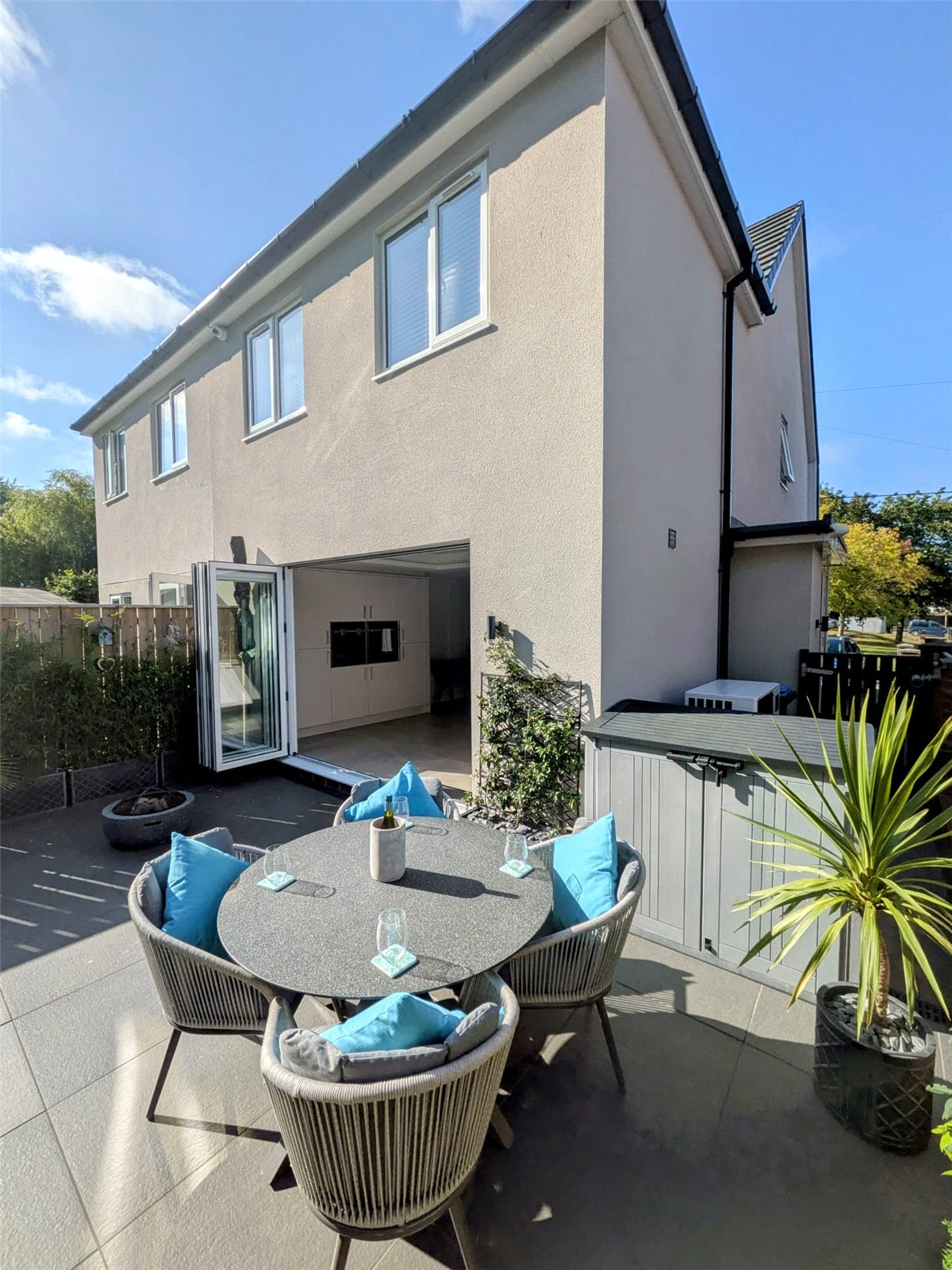 The accommodation offers comfortable living space with a bright entrance porch with ample storage, cloakroom, lounge/dining room with 3-part walk-in Bay window, a fully fitted kitchen with Island breakfast bar, 4-part Bifold doors to rear garden, 3 well-proportioned bedrooms the master having an ensuite shower room, a further family bathroom. The property also benefits from an Air source heat pump, full under floor heating to the whole ground floor and first floor bathrooms, private rear garden, double width block paved driveway to the front, creating a ideal area for entertaining and family time.