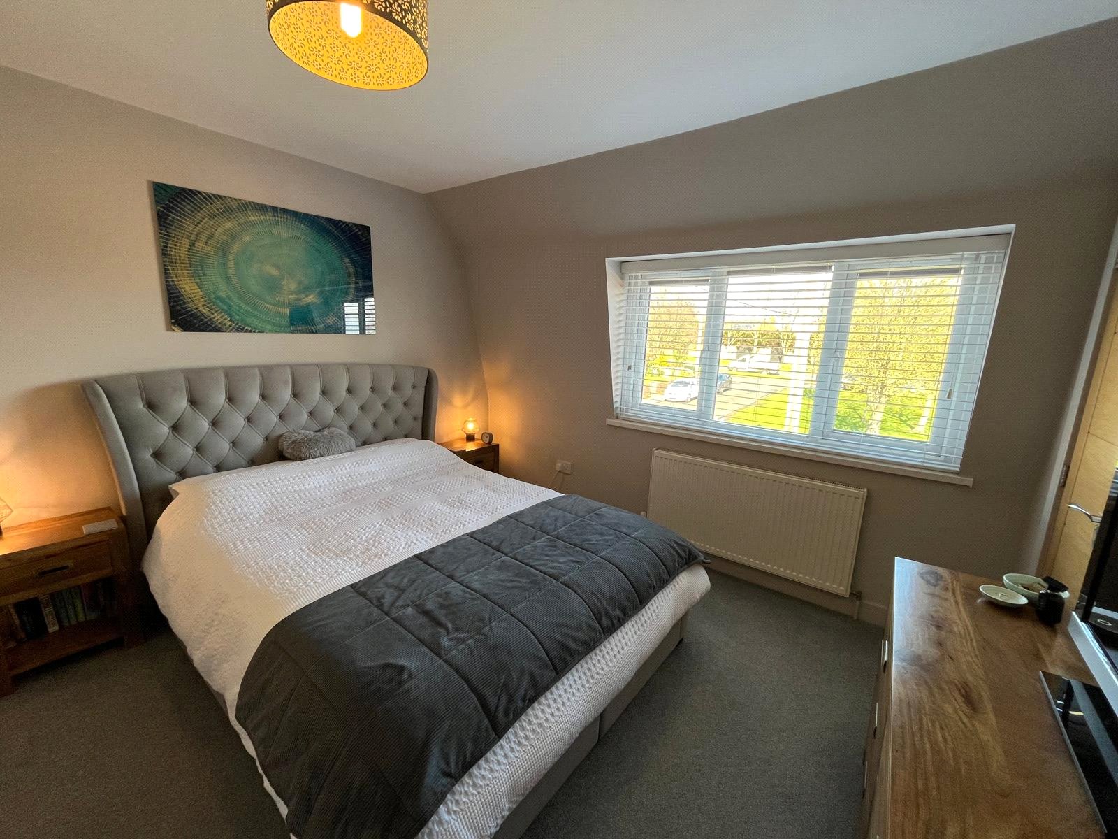 Double-glazed window with louver blinds, Double fitted wardrobes, radiator, carpet.