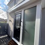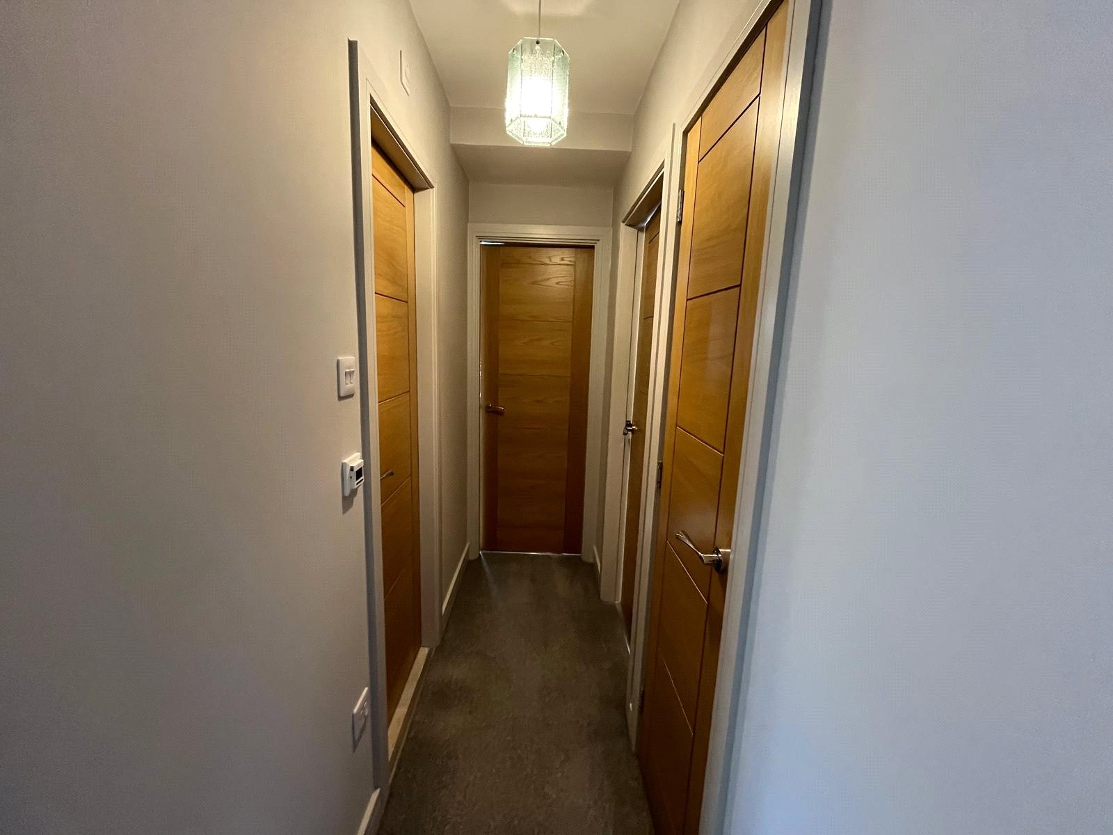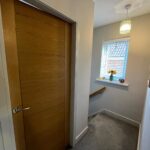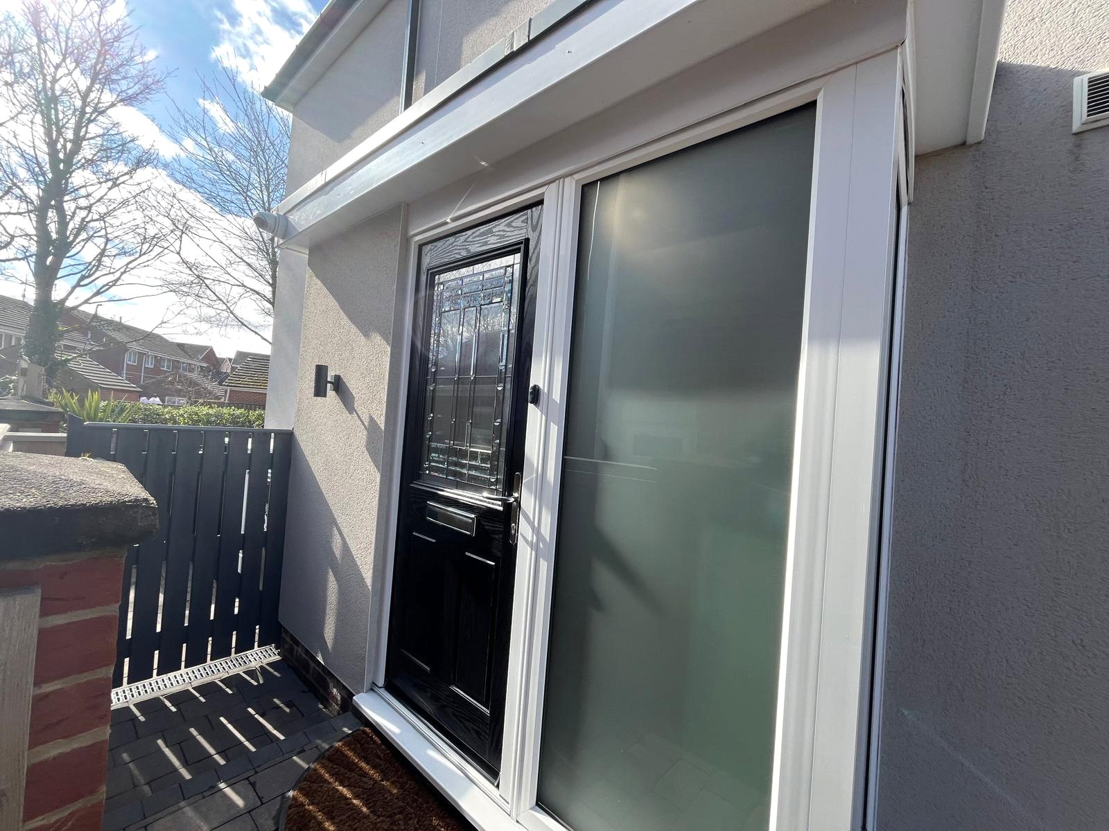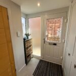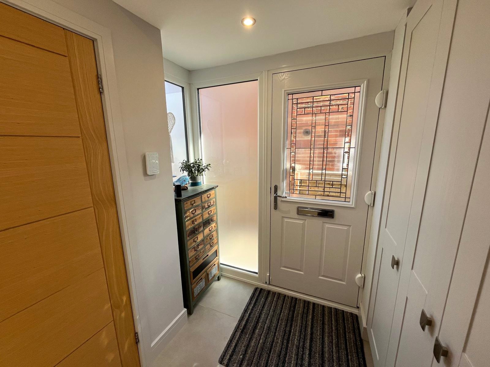 Leading to cloakroom, glazed door and side panel leading to living room.