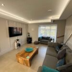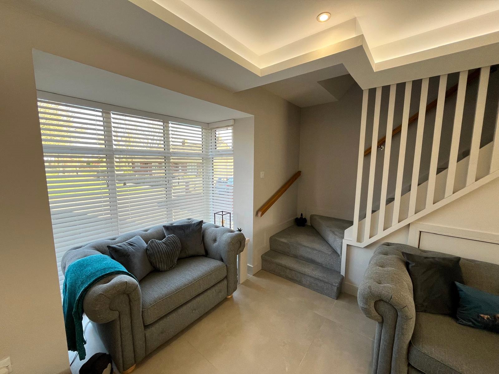 3-Part double-glazed walk-in Bay window, full wall of feature panelling, recessed ceiling with spotlights, tiled flooring with under-floor heating. Open plan kitchen.