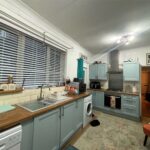 The kitchen contains a range of wall, base and drawer units, complimenting work surfaces, tiled splash backs and sink/drainer unit.