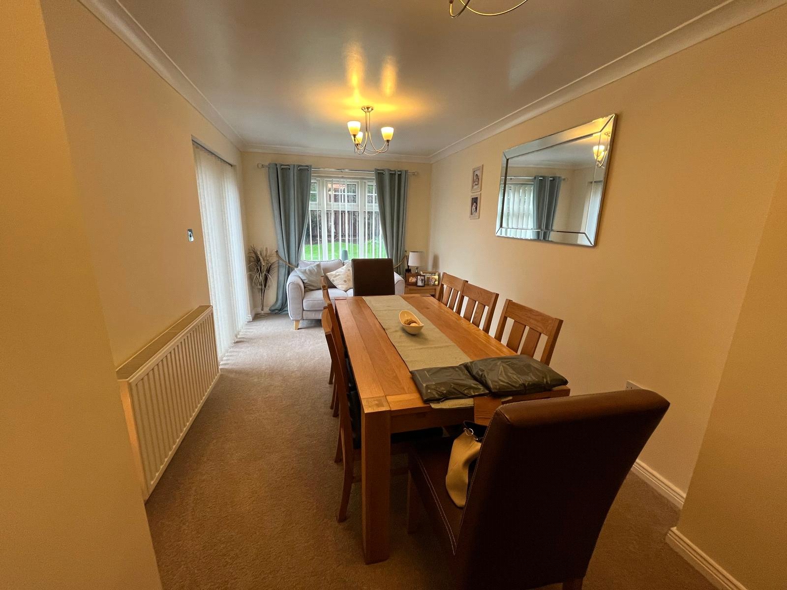 Double-glazed window, double doors to dining room, radiator, carpet.