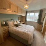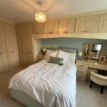 Double-glazed window, full range of fitted wardrobes, overhead units, bedside drawers, dressing table, radiator, carpet.
