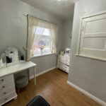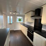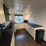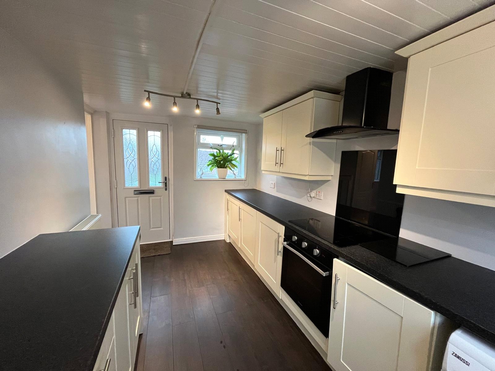 2 Double-glazed windows, full range of fitted base and wall units, ceramic sink, electric oven, induction hob, extractor hood, integrated fridge, integrated freezer, space for plumbed washing machine, laminate flooring, radiator.