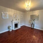 Double-glazed window, feature fireplace with timber surround, marble hearth and inset electric fire, laminate flooring, radiator.