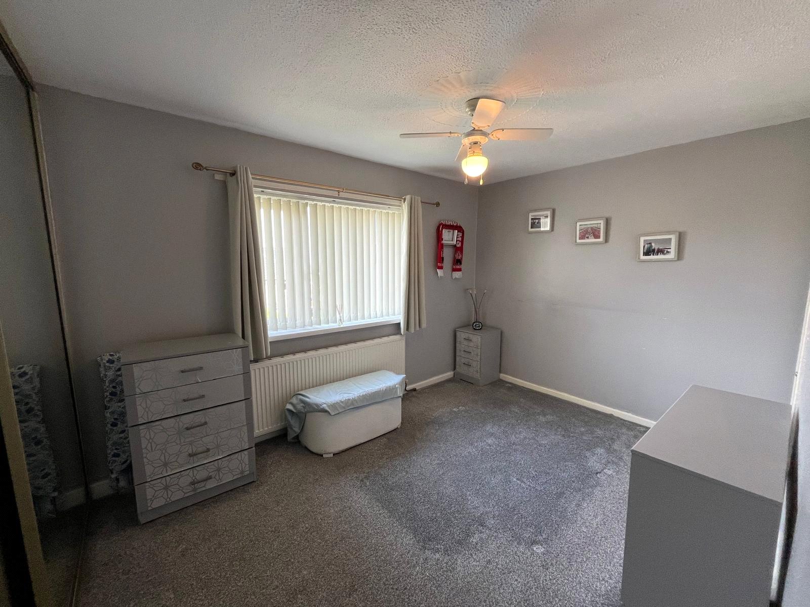 Double-glazed window, built-in storage/wardrobe, radiator, carpet.